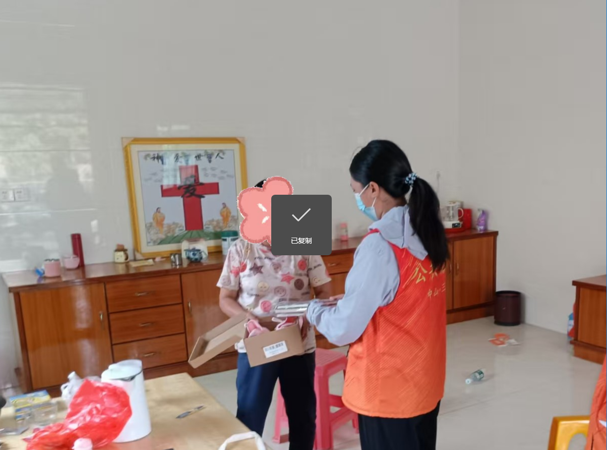 | 反馈信息: | 服务对象收到物资很开心,感谢捐赠人。 | ||||
